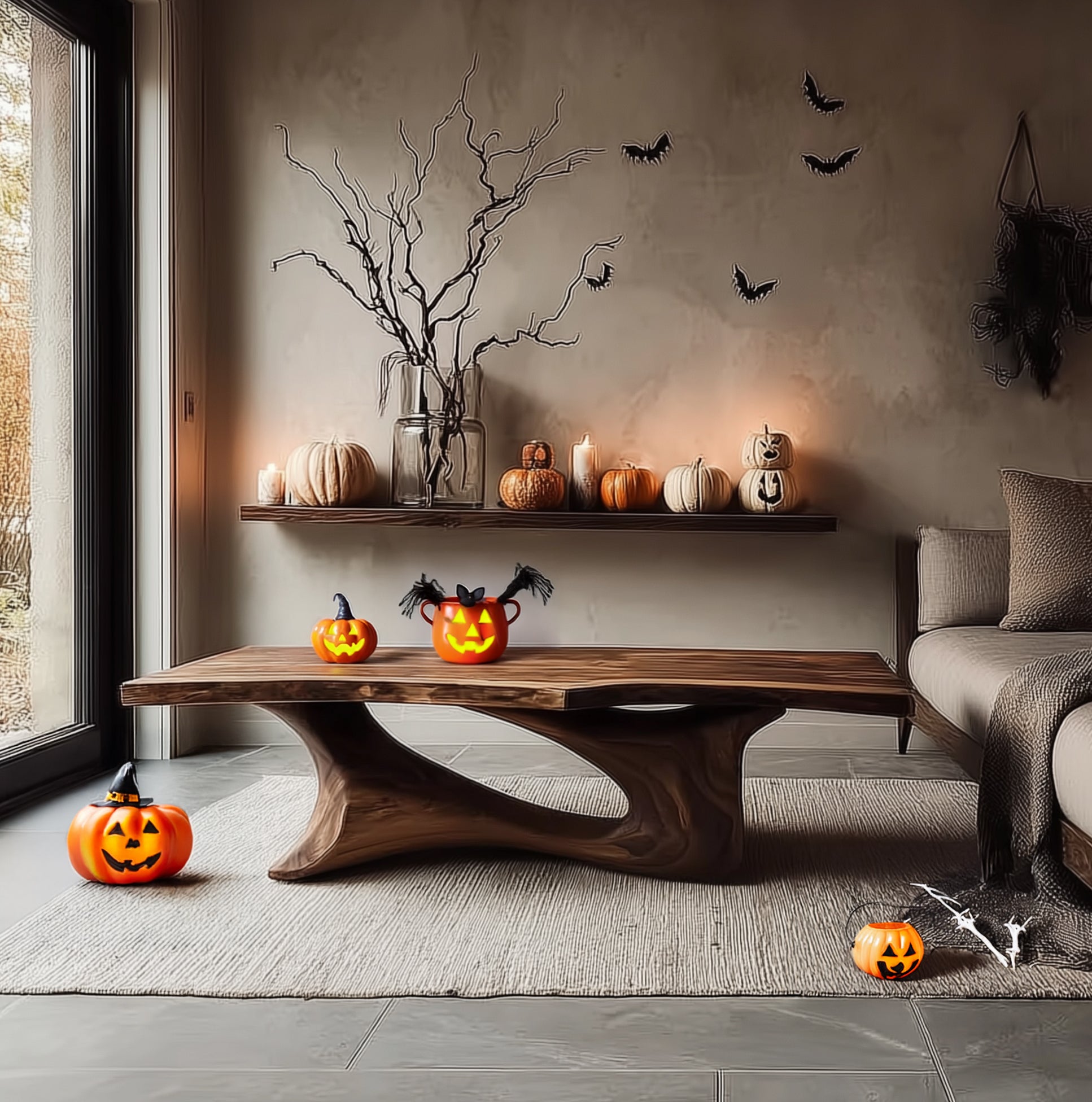 Handcrafted Solid Wood Coffee Table – Organic Sculptural Modern Living Room Table